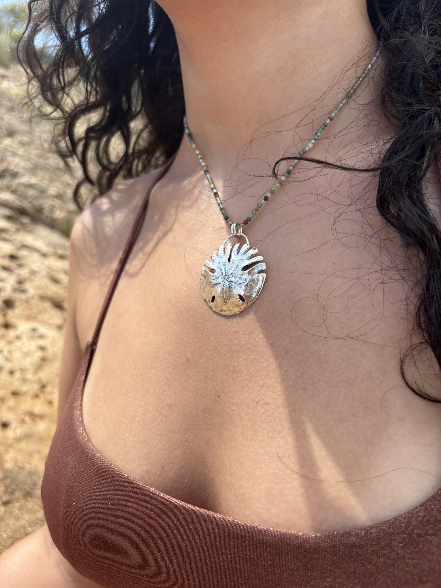 Durante un viaje a las playas inexploradas de Santo Tomé, descubrí un sand dollar (dólar de mar) que me inspiró profundamente. Su forma perfecta y su delicado relieve capturaron mi imaginación y encendieron el deseo de inmortalizarlo.