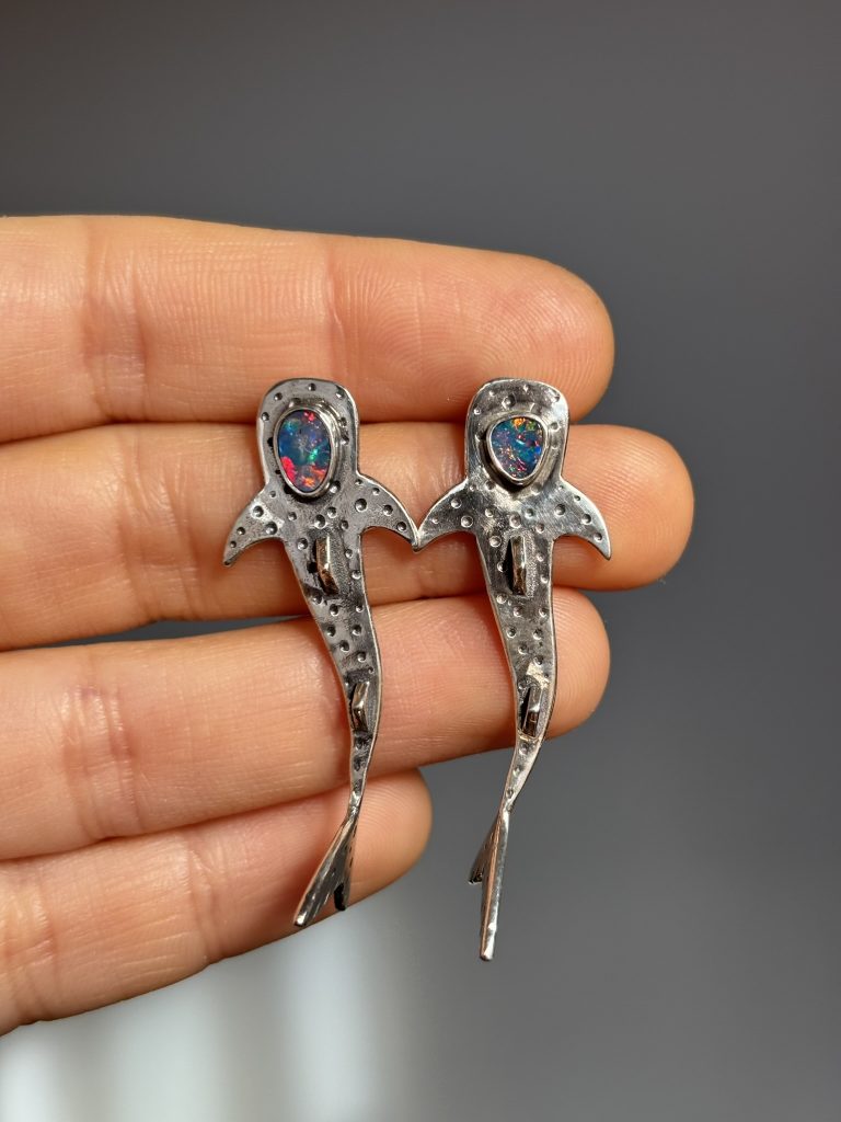 Inspirados en la belleza silenciosa del océano, los pendientes Asterina evocan la forma delicada de las estrellas de mar, forjadas a mano en plata de ley y realzadas con unas preciosas gotas de crisocola que parecen surgir de las profundidades marinas.