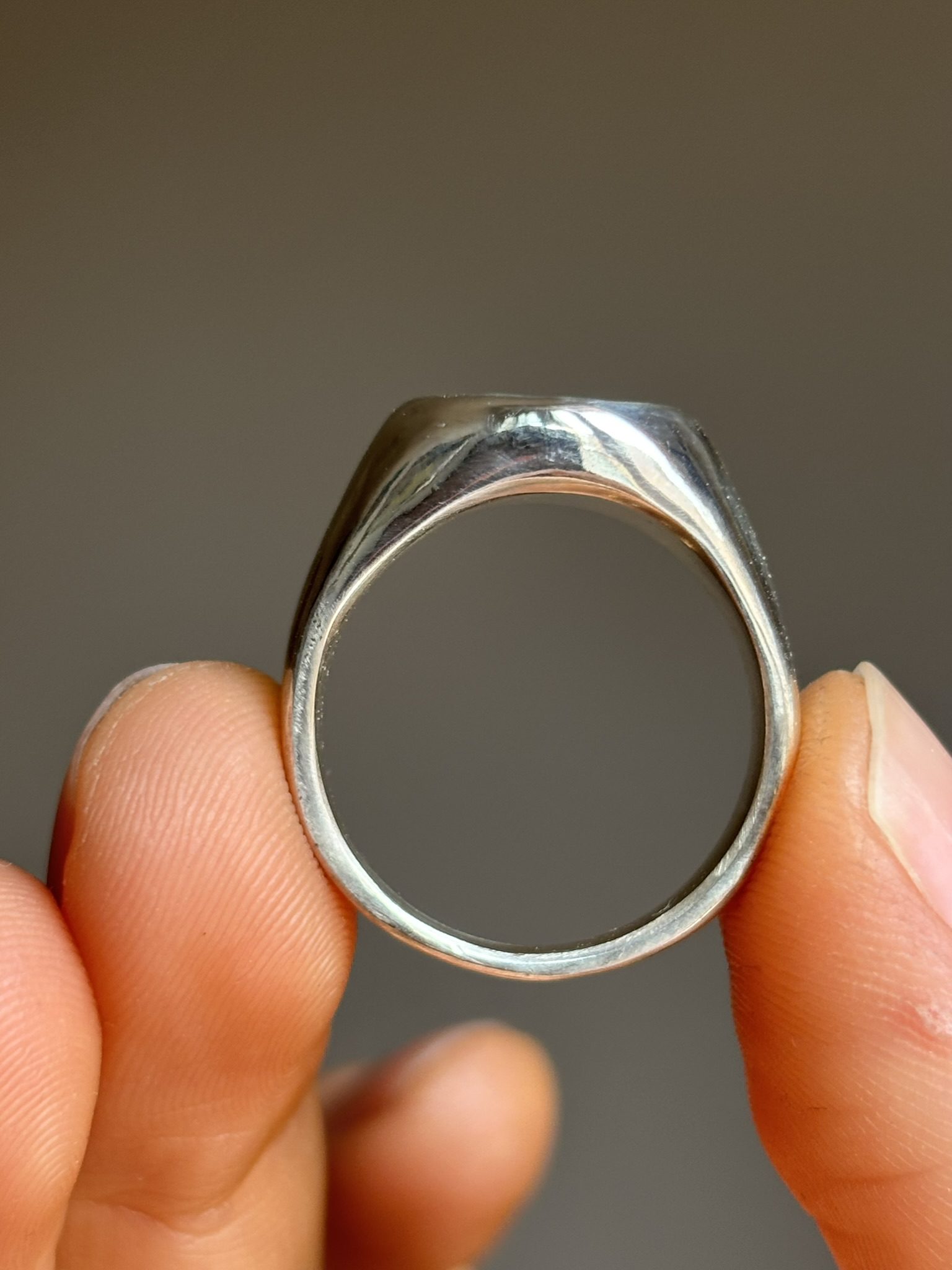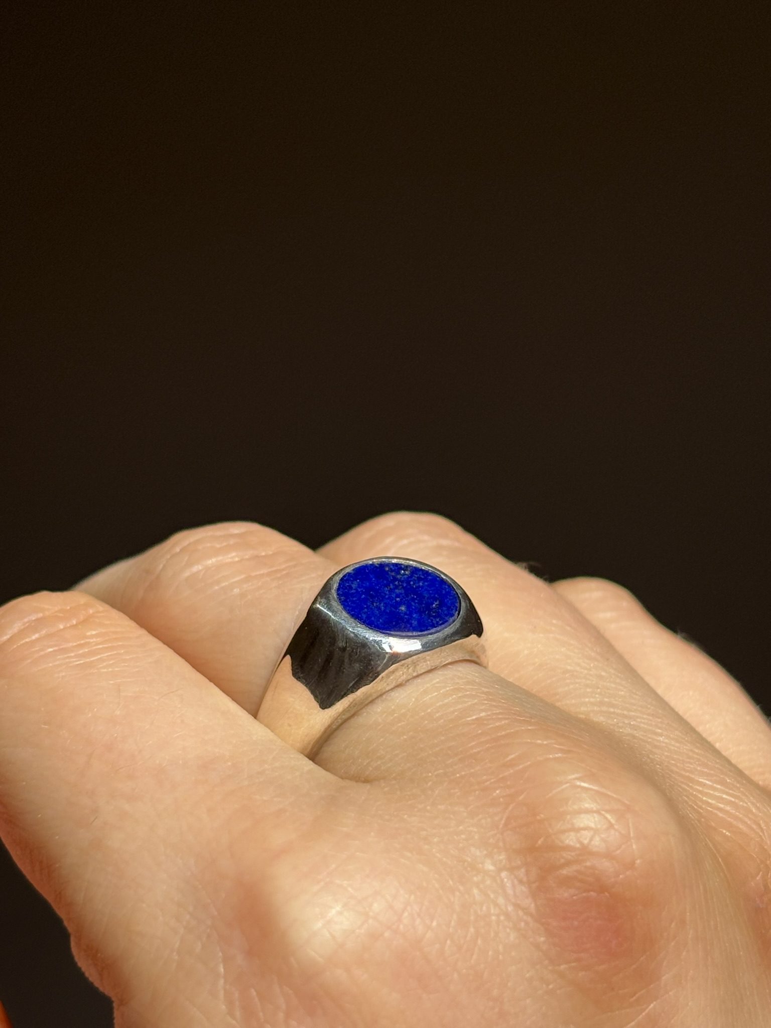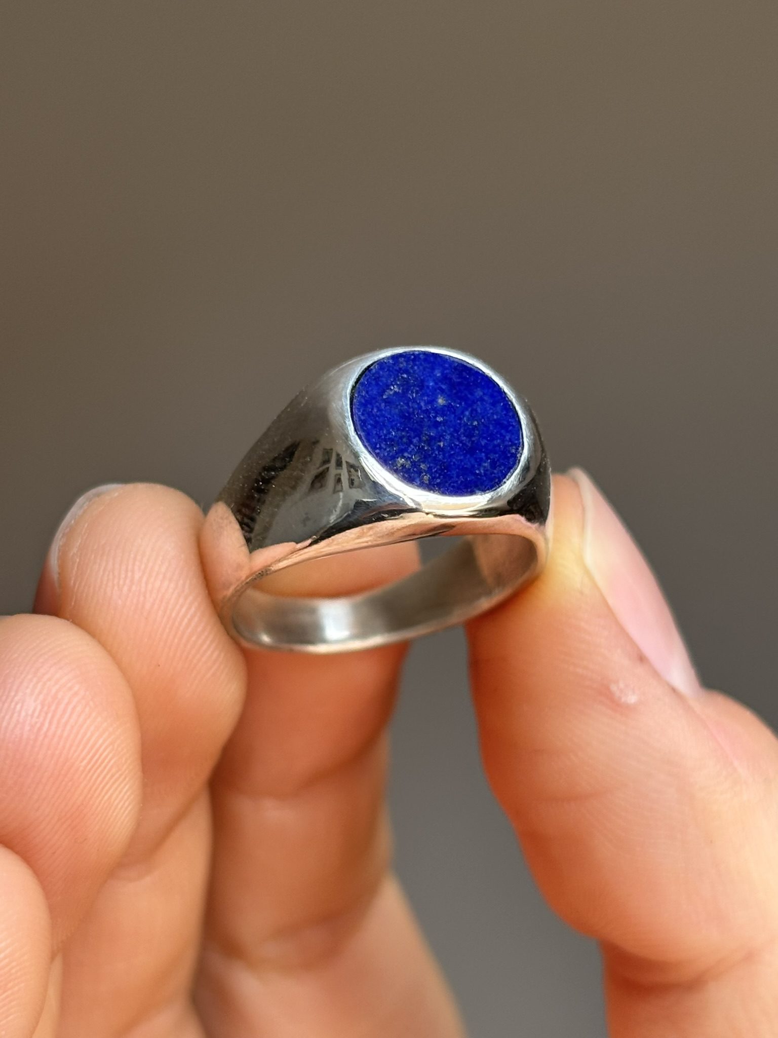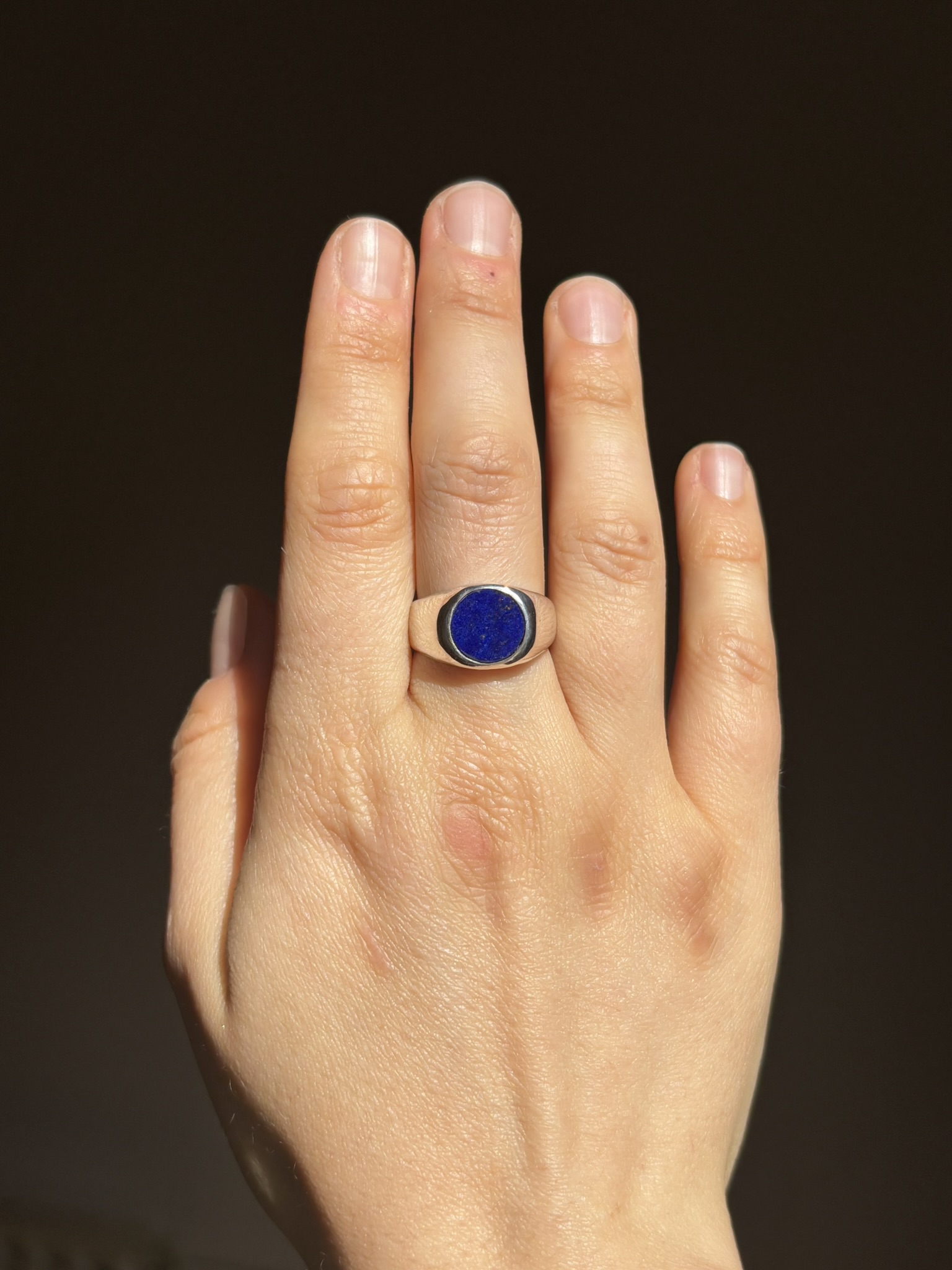 Sello macizo de plata con diseño circular, protagonizado por un lapislázuli de alta calidad.